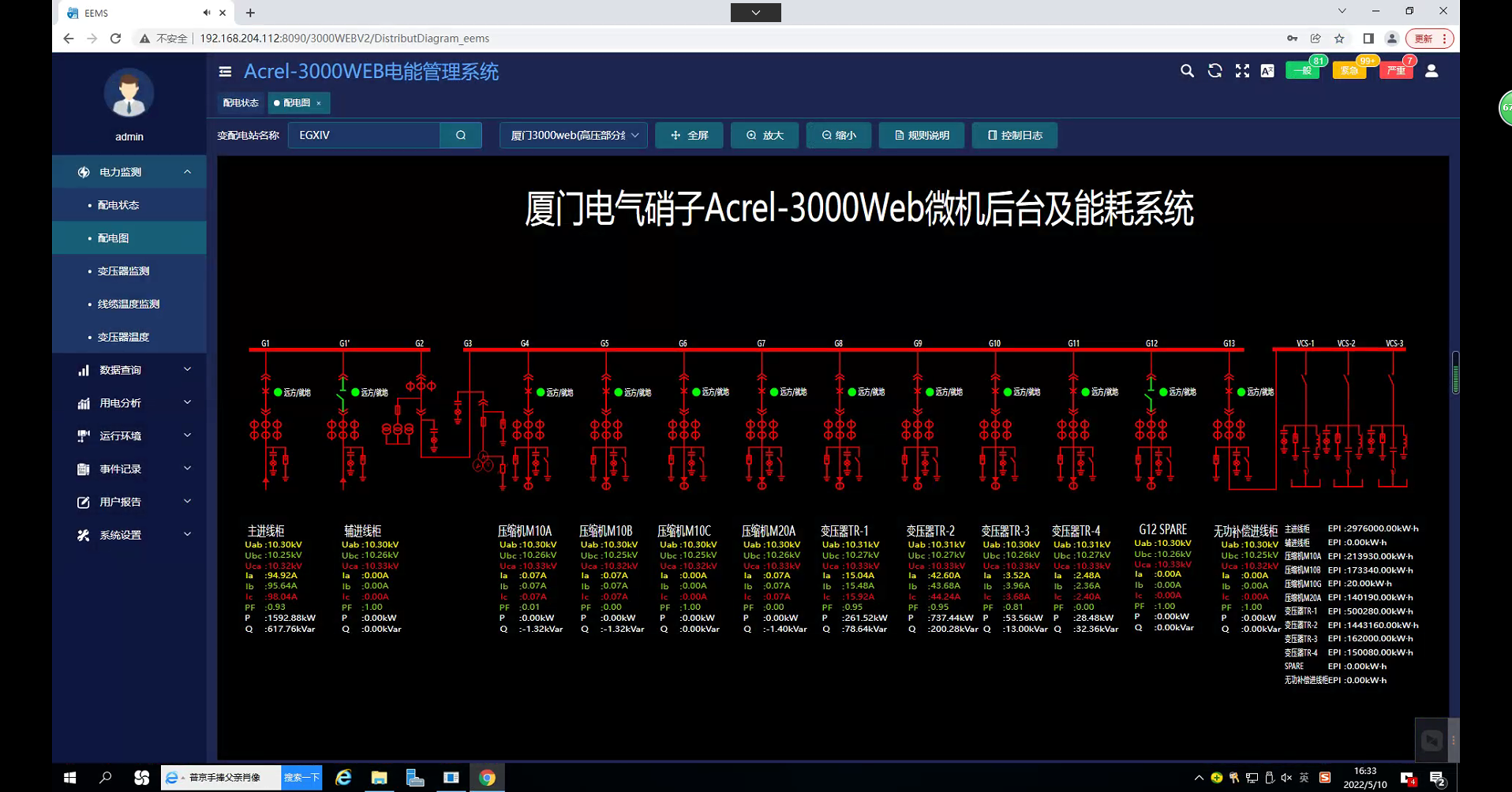 项目名称:厦门电气硝子项目电能管理系统