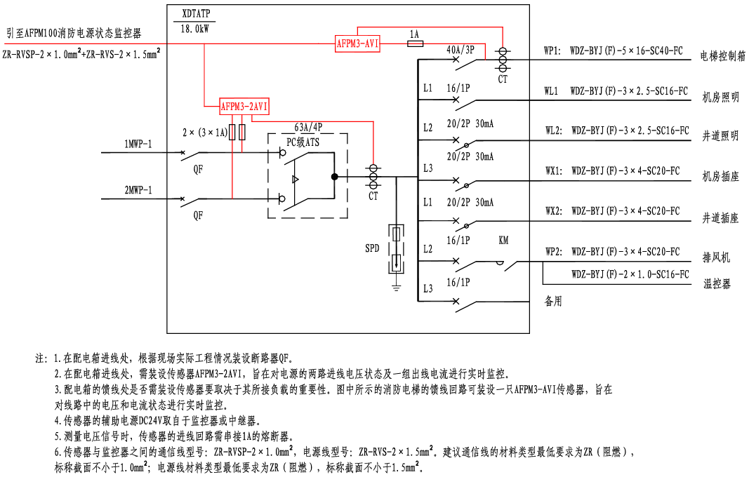 消防电梯两路电源、一路电流监控系统图